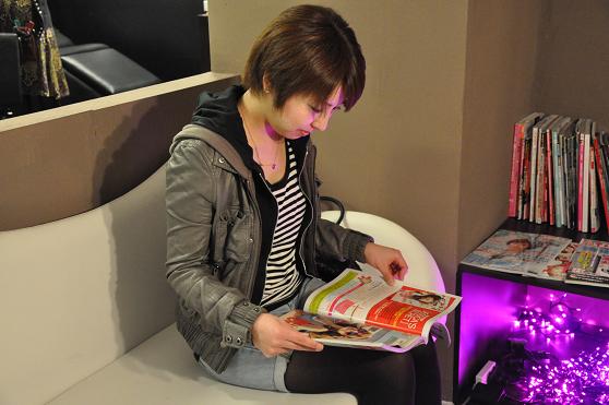 わたしと同様、待ち時間に日本雑誌新刊を読みふけるいそかさん。