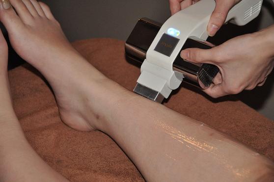 少しひんやりとしたジェルを塗り、少しずつずらしながら光を当てていきます。