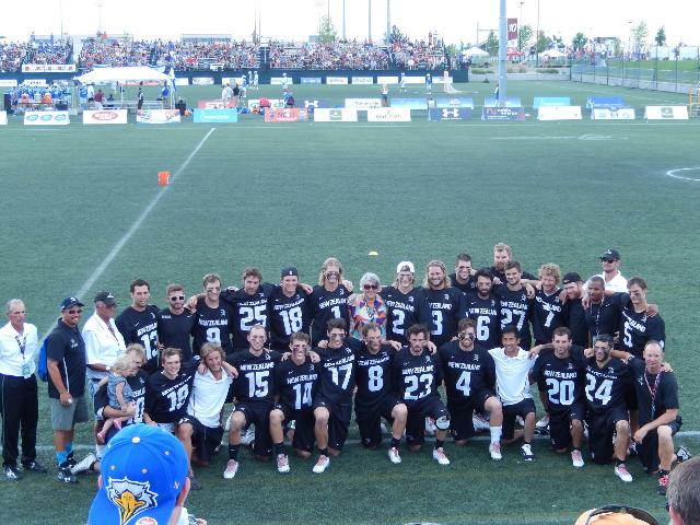 そして我らニュージーランド!! 今回はラクロスオリジナルバージョンのHAKAでした。(迫力満点。メディアも注目!!