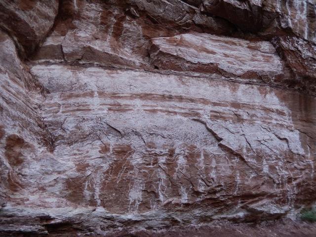 上方から下方へ水の流れた後です。(地層には異なった成分が含まれていて、この様に水の流れと同時に、成分も、どうぞと流れていきます。模様となりArtsです。)