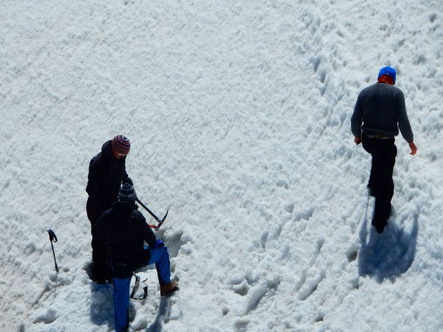 私は、時間が沢山あったので、ここで焼いてました。(風に当たると寒いのですが、周りを岩や石の壁を作り途絶えさせると、暑いです。雪の反射も凄くて、アホ程に焼けました。凄い位に。)