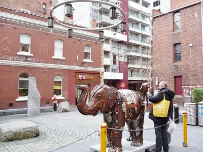 これはメルボルン動物園の150周年を記念したイベントで、ファイバーグラスでできた等身大の子象「Mali」が様々な