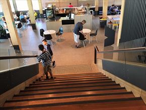 建物も木材が多く使われたモダンなデザインで、入ってすぐの所にはカフェがあり、何かと便利。