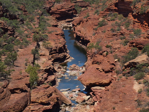 そしてそして、次はKalbarri National Parkへ。パースから北へ約580km。拠点となるのはインド洋に面したKalbarriという町。海沿いではインド洋の青さとごつごつした赤い崖のコントラストが美しい。