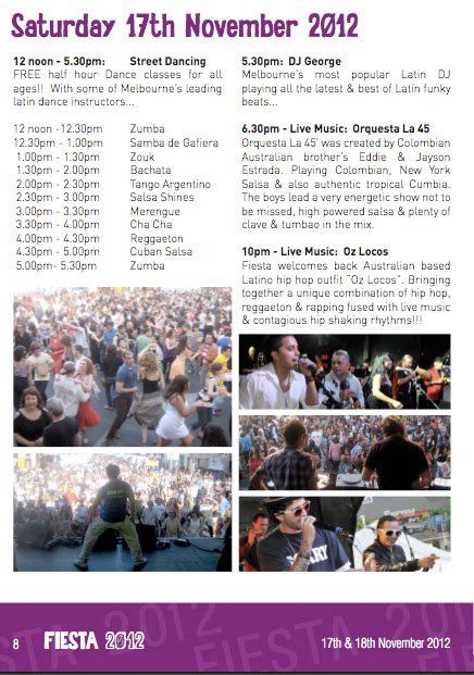 晴天に恵まれた週末、FitzroyにあるJohnston stではラテンのお祭り“HISPANIC FIESTA 2012”が行われました。
