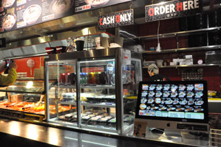 システムは、セルフサービス式。 カウンターの右端で種類を注文する。