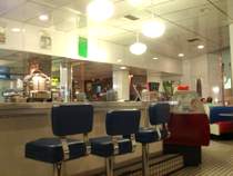 お店の内装は、映画のシーンに出てくるような田舎にある食堂の雰囲気。古びた感じのカウンター、座席も映画さながらの配置。1940年代から動いているジューク・ボックスが各テーブルに設置されているので、たまにはジョニー・キャッシュ(Johnny Cash)やエルヴィス・プレスリー(Elvis Presley)といったオールディーズ・ナンバーを聞くのもいいかもしれない。