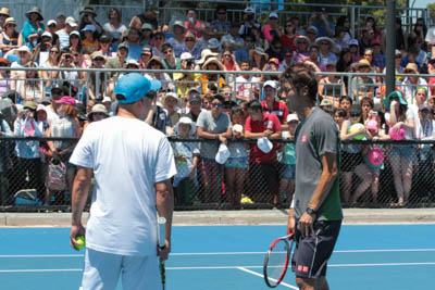 Australian Openで見られるのは試合だけではなく、選手の練習も見ることが出来る。コート16、17、18ではMCGに繋がる橋が昨年から大会期間中も入れるように開放され、選手の練習を上から眺めることが出来、普段とは違った角度から楽しむことが出来る。練習スケジュールは大会HPで確認することが出来るので、前日にプリントアウトや、携帯に予定を登録しておくと見逃さないだろう。ただし、Federer、Nadal、Djokovic、Murrayなどの人気選手はかなりの混雑になるので、近くで見たければ早めに行っておく必要がある。
