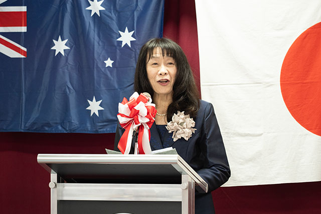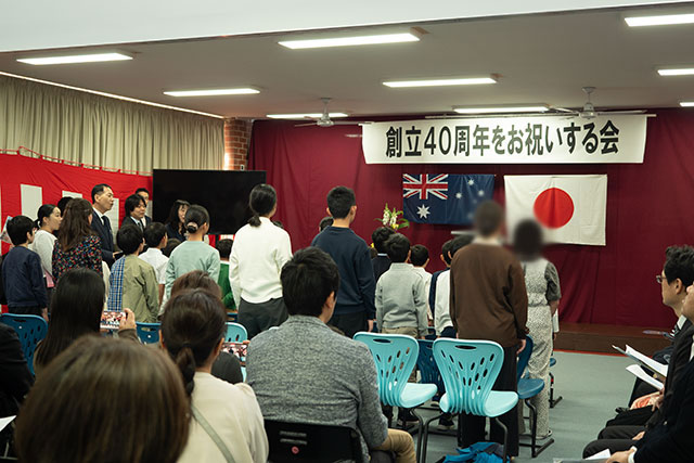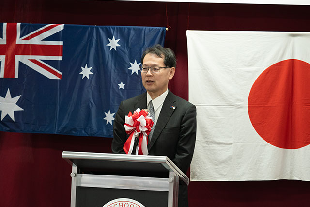 続いて、創立40周年をお祝いする会大森康成実行委員長、小橋幸代校長の挨拶があり、在メルボルン日本国総領事館・古谷徳郎総領事からは「次の50周年、100周年も目指してください」との温かい祝辞が寄せられました。
