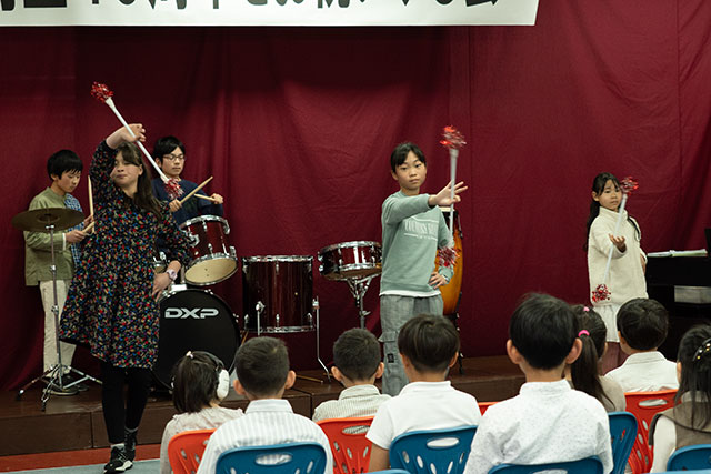 今年のテーマは「紡ぐ~未来へのバトンパス」。各学年が劇や合唱、合奏を通して、日々の学びの成果を披露しました。