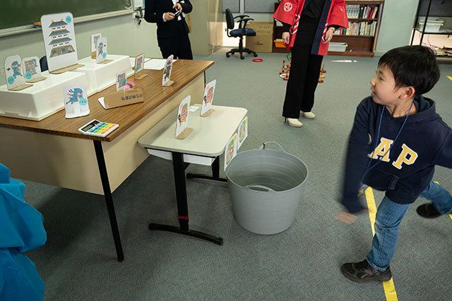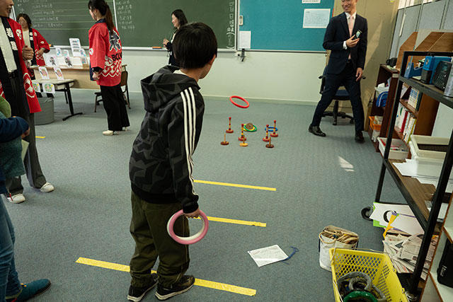 トントン相撲、輪投げ、手裏剣的当て、紙飛行機とばしなど、どのブースにも笑顔があふれました。